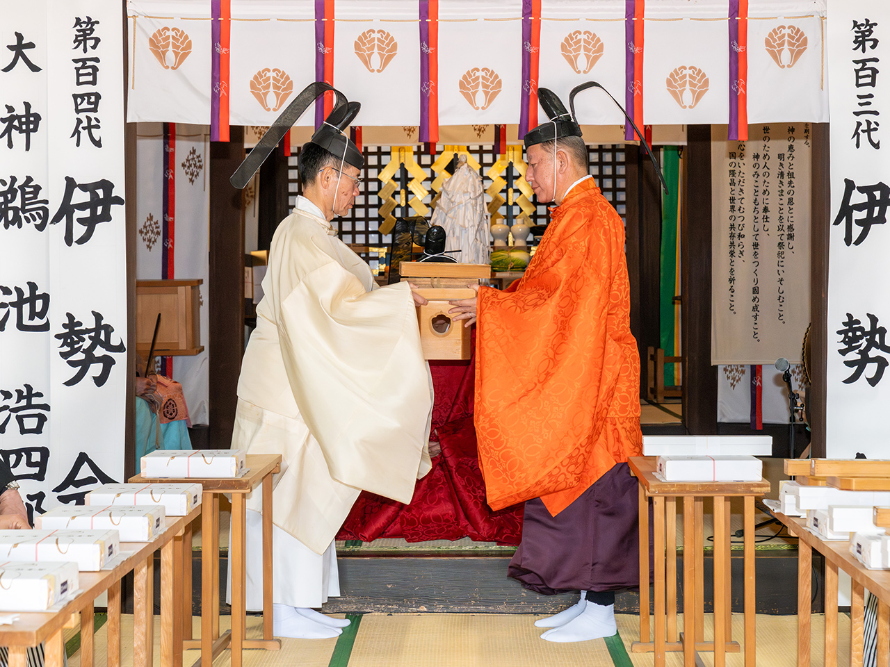 来年二月十日、十一日の伊勢大神宮大祭は、第百四代が祭典奉仕をされます。皆様どうぞお参りをお願いいたします。